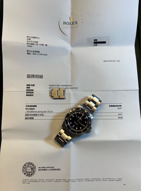 隨附物件:單錶、勞服發票