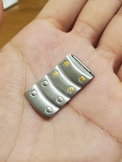 購入時賣家附上的錶節如最後一張圖,有兩截替代的原廠錶節沒有半金螺絲,是較為可惜