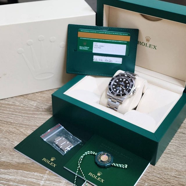 【配件】:勞力士原廠綠色錶盒,保證卡,皮套,說明書,吊牌,多餘錶節。