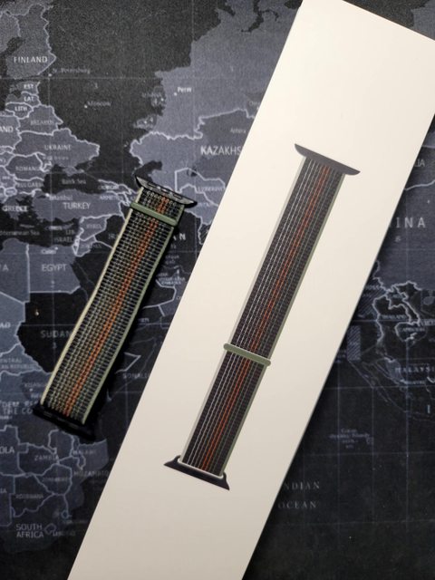 盒裝狀態:齊全,原錶帶為45mm橄欖灰配黑色NIKE運動型錶帶,因其已遺失故附上45mm午夜