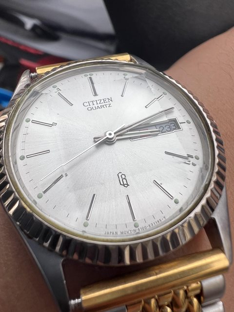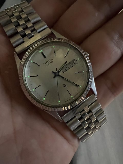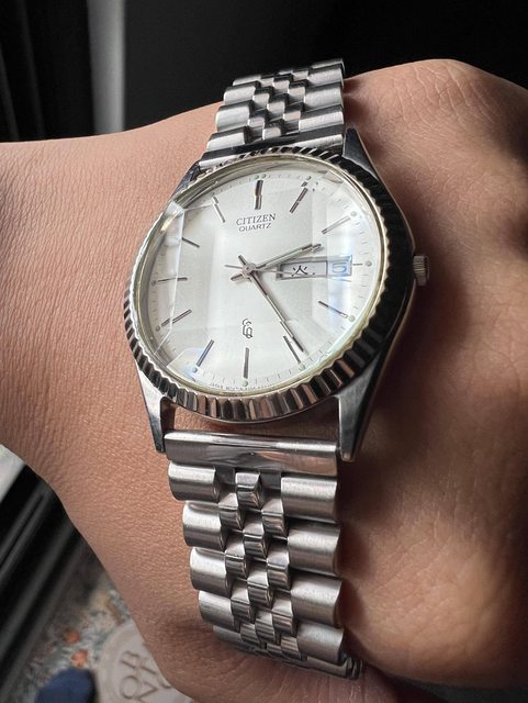 品牌:星辰 機芯:石英 錶況:已整理過,電池剛換新 錶徑:約37mm(我的手圍16.5可參考 價格:2060(含運 配件:副廠銀色平頭五珠鍊 交易:站內信加賴,匯款後超商店到店 錶況: 特殊的五切面鏡片,以及太陽圈。 走時快調跨日都正常。 都有正常使用痕跡,如圖所示。 夜光還很清楚。 老錶視為不防水,售後不退。