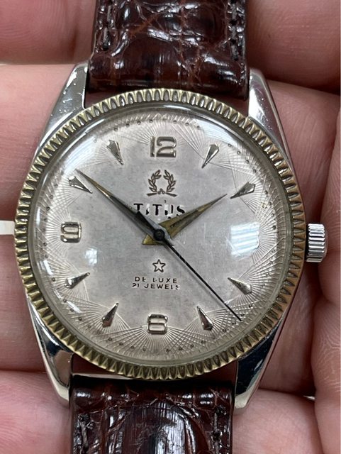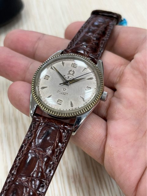 3.鐵達時1950年代古董老錶 走時正常 藍鋼游絲 機芯推測為1950年代之機芯 英文字體有掉,其餘正常 售2300