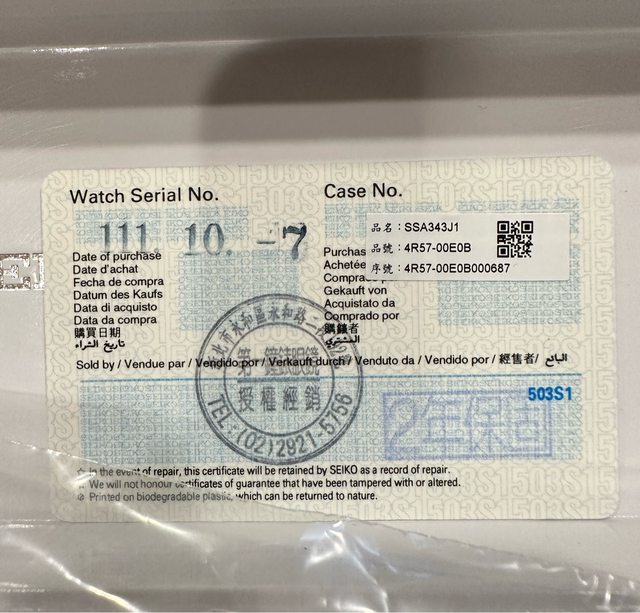 品牌:Seiko presage SSA343J1 有盒、保卡
