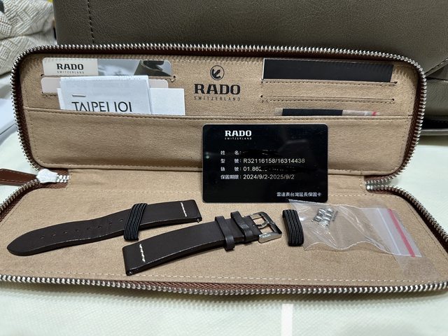 隨附物件:整套盒裝、Rado手錶收納盒、Rado皮革收納套、原廠皮錶帶、保卡。