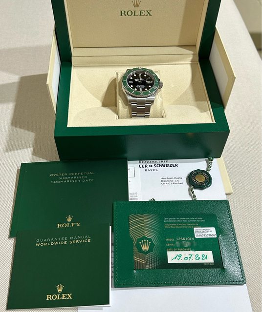 品牌名稱:Rolex 手錶型號:126610lv 保單年份:2021/7 購買地點:國外AD 欲售金額:47.5萬元 物品所在:台北 隨附物件:盒單錶節配件 購買證明 商品敘述:品項非常新 無拋整過 可配合rsc 聯絡方式:站內信留line