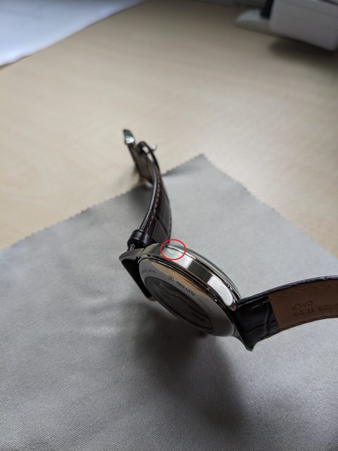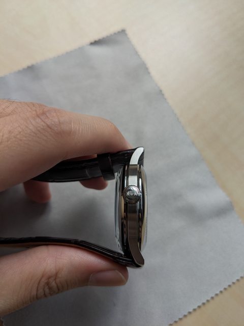 使用狀況:日常配戴細痕,鏡面無傷,錶殼左側有小小的嗑碰痕跡,新舊程度約95%