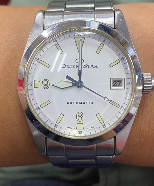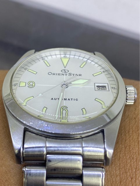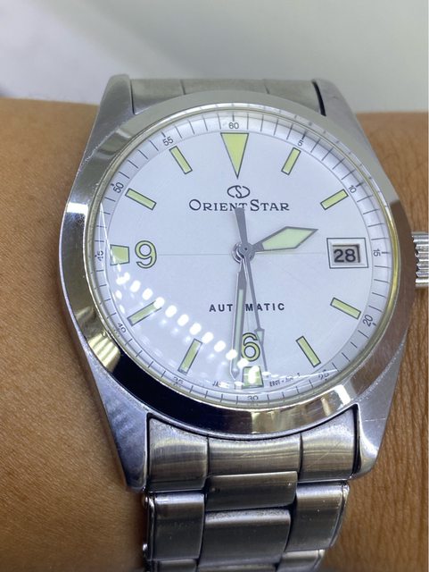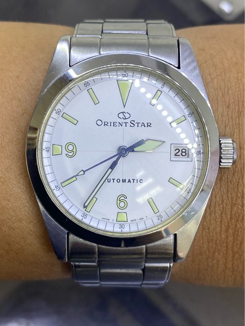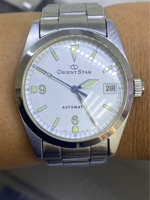 【商品名稱】Orient Star WZ0061ER 【商品價格】4060元(含店到 【新舊程度】如圖 【附件】原廠錶盒,多餘錶結 錶徑約36mm 類似探ㄧ搭配5517軍事劍針 絕版難找,已解毒故出售 無面交,匯款後店到店