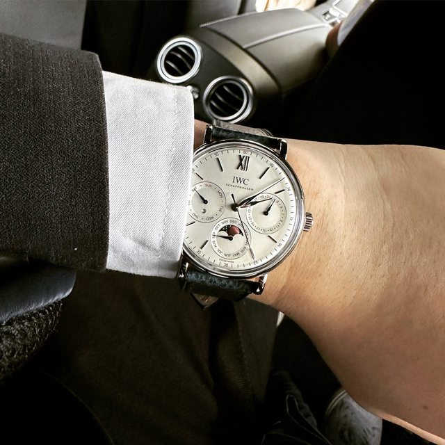 猶記小時候第一次看到IWC這個牌子,是爸爸的葡萄牙南北月相萬年曆,當時還是流行大錶的年代,我就被盤面的佈局深深吸引,沒想到有天也能擁有自己的IWC萬年曆,而且是剛剛好的錶徑,戴上手就拿不下來了,其他的錶都被我冷落了哈哈。