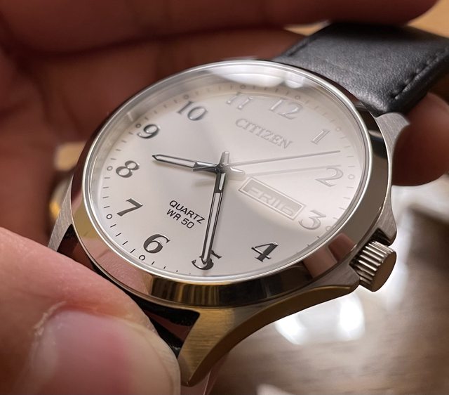 Citizen阿拉伯數字石英錶,易讀性很好,輕薄服貼,星期/日期雙顯。礦物玻璃鏡面,防水50米,適合日常休閒配戴。當初在日本網站全新購入,因入手其他錶款,所以要出售。