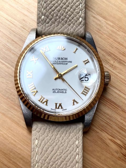 18K金錶圈白瓷羅馬面蠔式機械錶
