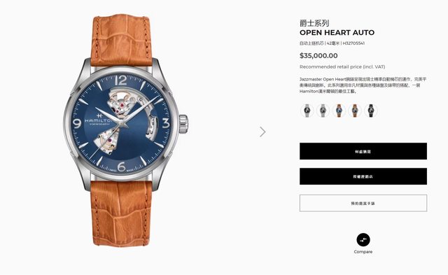 手錶品名:Jazzmaster Open Heart Auto