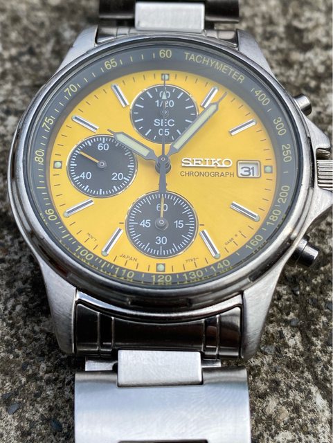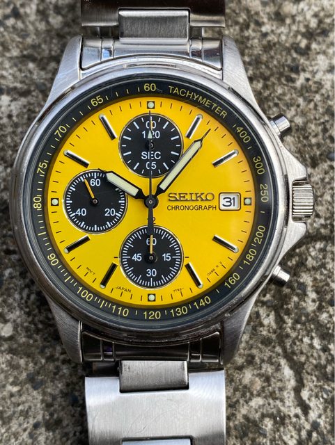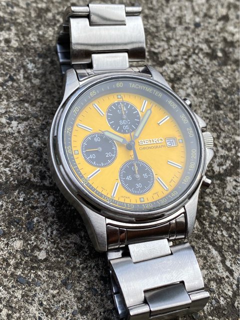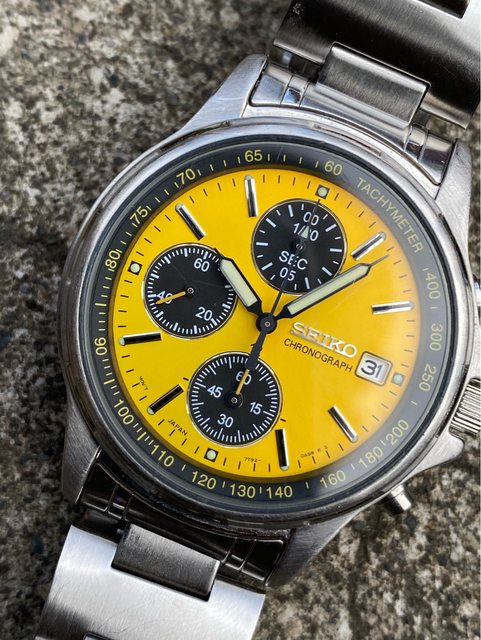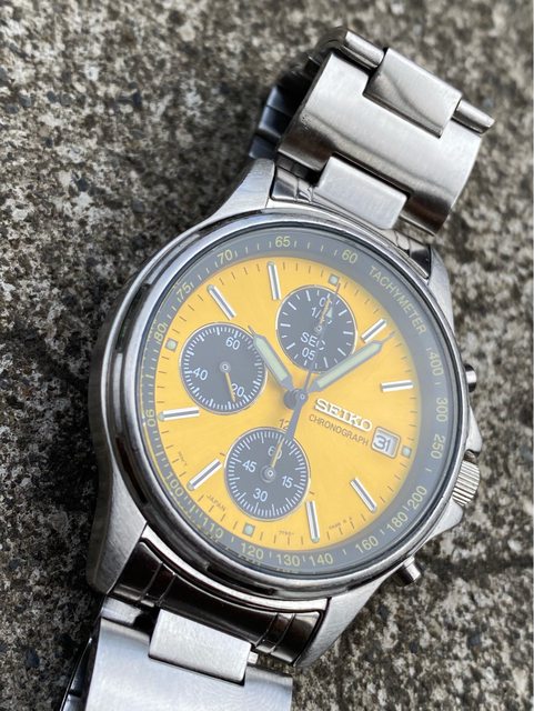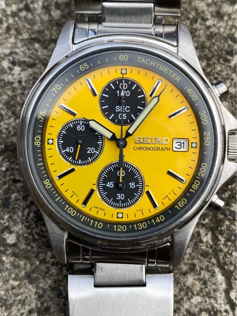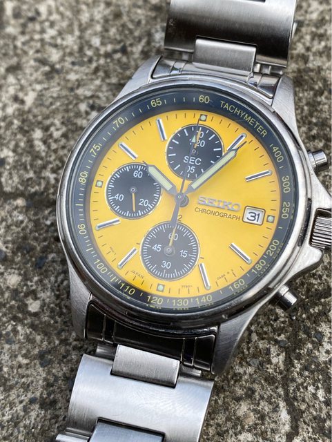 少見的精工黃色熊貓石英計時錶