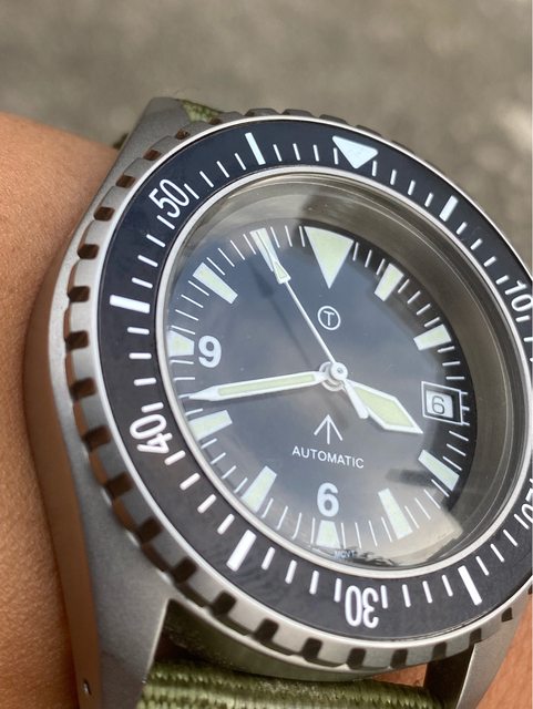 搭載ETA2824機芯 防水200m 旋入式龍頭 圓頂玻璃 錶徑約44mm(不含龍頭) 走時精準,換曆正常 —————————————————- 匯款後店到店,無面交服務