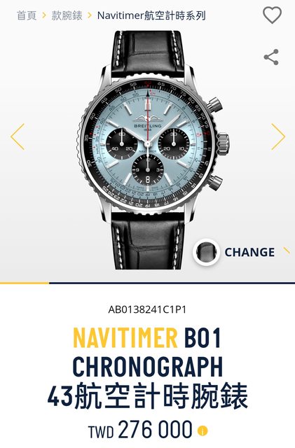 標題[賣錶] 百年靈Breitling Navitimer 43冰藍面