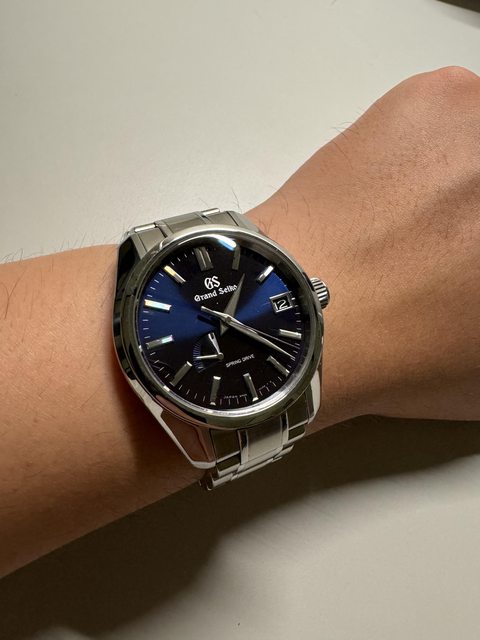 商品描述:44GS錶殼+Spring Drive機芯+午夜藍色面盤 非常閃耀動人 錶盤戶外看近似黑