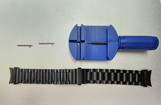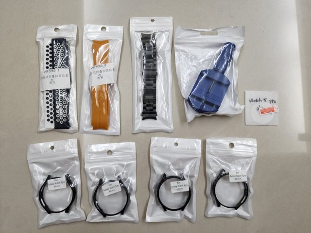 ,藍白色透氣錶帶x1,全新的黑色不鏽鋼錶帶(包含錶帶長度調整工具),玻璃保護貼x1(
