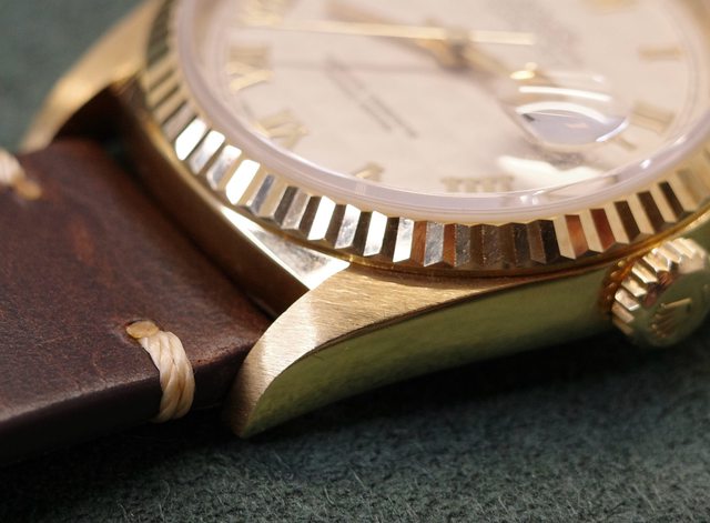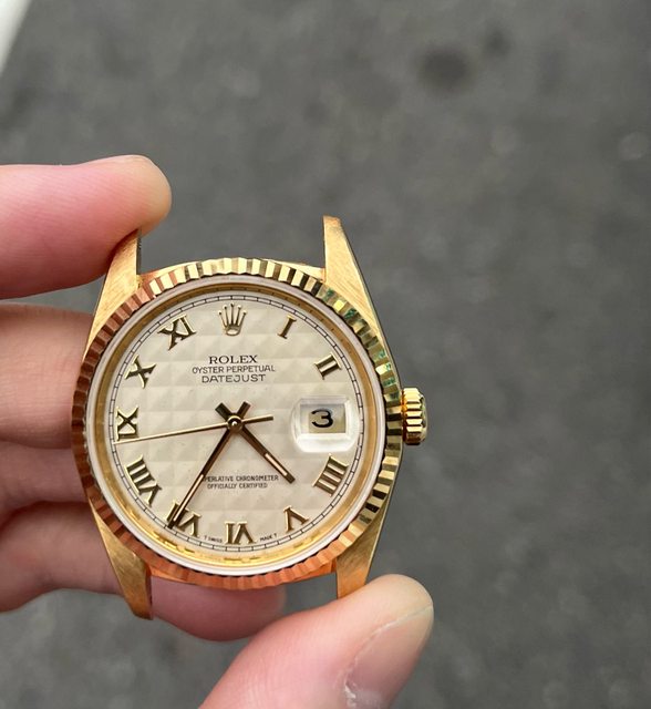 這是一支生產於約1990年的 16238 面盤是白色金字塔面,不過面盤有氧化、起泡,詳細請看圖 不過整體還是非常不錯的 整支錶的印記、殼型、圈也算完整 背蓋內面刻有序號是早期勞服保養的習慣 出廠年份:E字頭(約1990年) 購買年份:2023年 欲售金額:新台幣22萬元(不議價不交流感謝) 物品所在地:桃園青埔 隨附物件:單錶頭及代用皮錶帶扣 聯絡方式:站內 物件總評:如圖請參考 物件描述:可配合勞服更換錶耳棒 --
