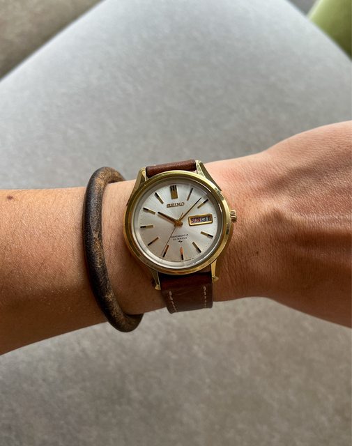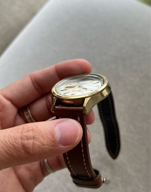 別的是黑金搭配時標和針組,已更換皮錶帶,再附上一條精工老鏈帶,已洗油保養更換鏡