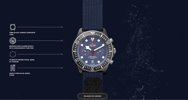材質: 黑色碳複合材質 + 鈦金屬錶殼、錶扣 鈦金屬雙向旋轉外圈 / 藍色織紋錶帶