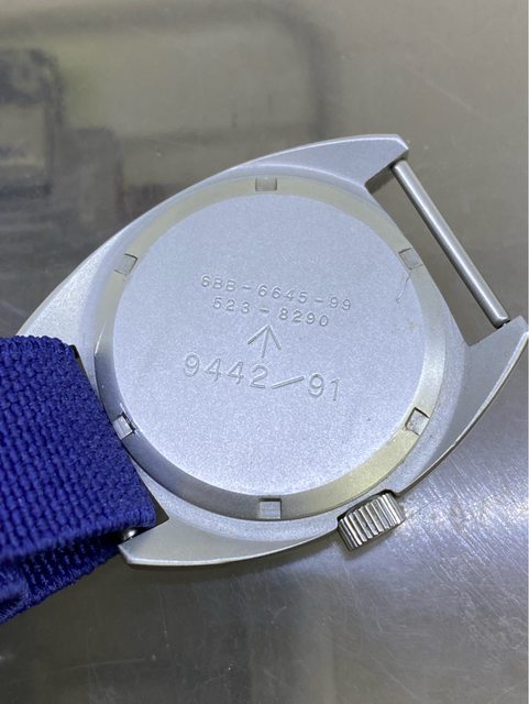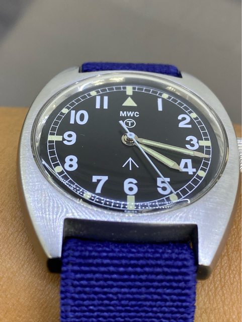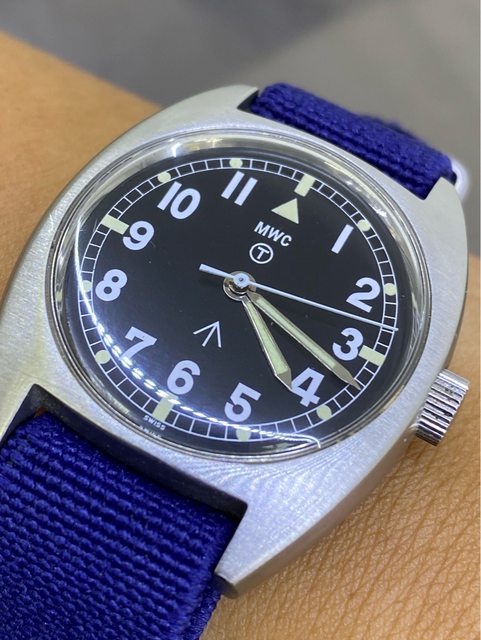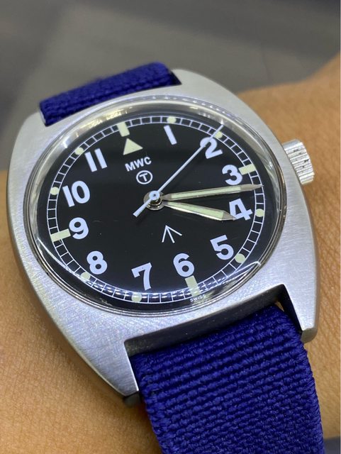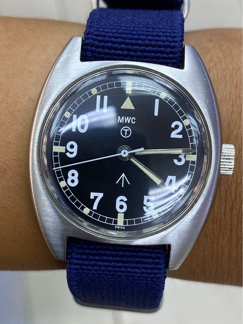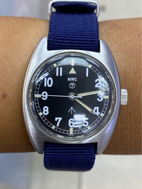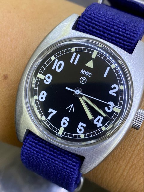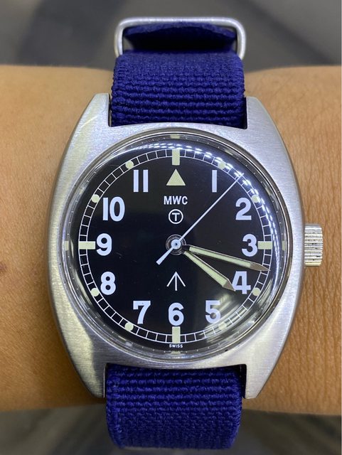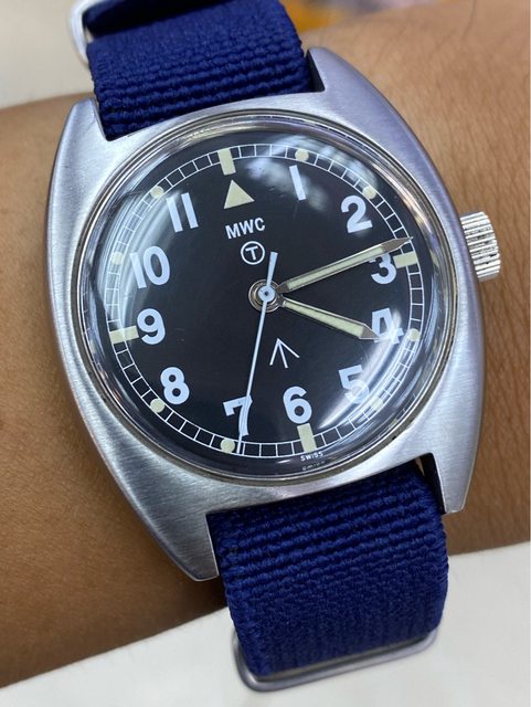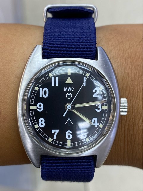 【商品名稱】MWC W10 石英軍錶 【商品價格】2060元(含店到店 【附件】單錶一顆 ————————————————— MWC 90年代 石英 軍錶 經典酒桶錶殼,T字與雞爪. (Broad Arrow) 背蓋6BB應該是英國皇家空軍代號 1991年生產 錶徑是當年經典36mm 已更換電池 —————————————————- 匯款後店到店,無面交服務