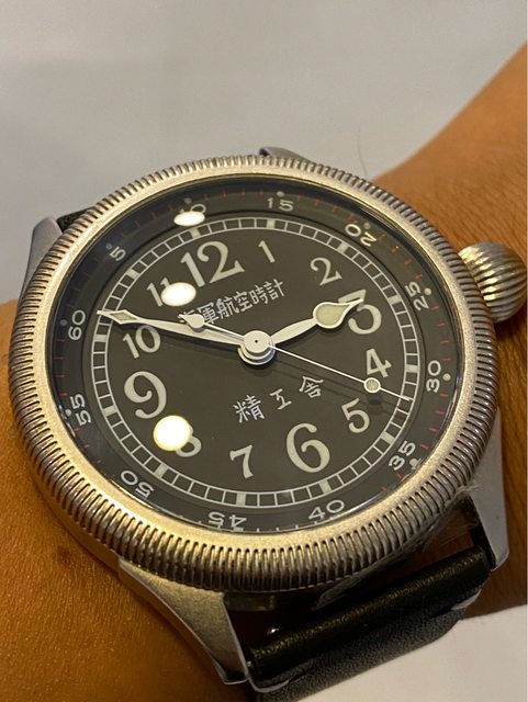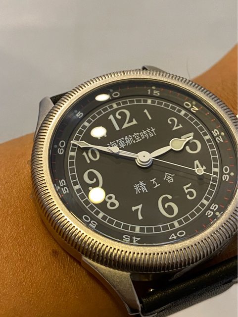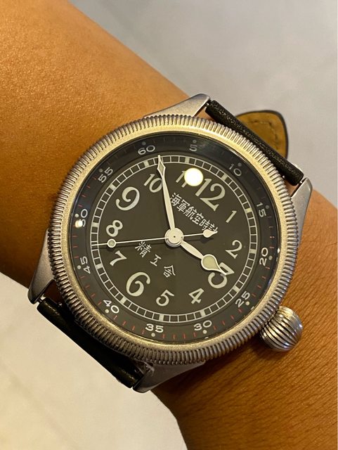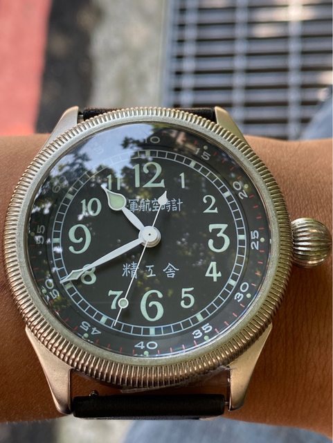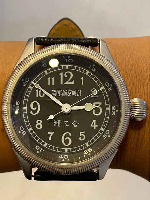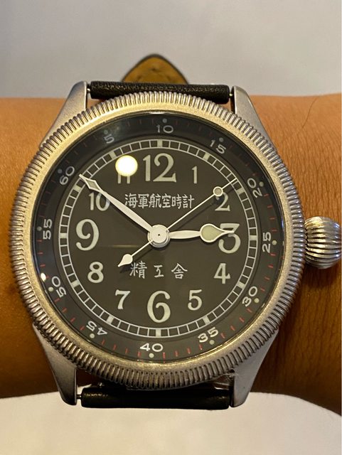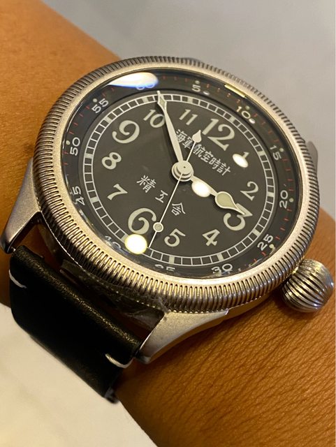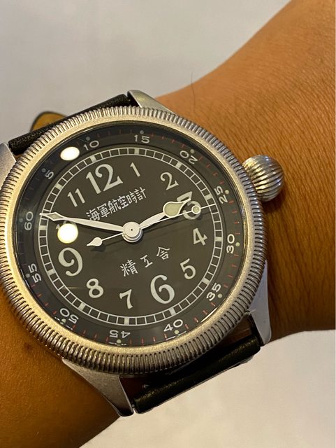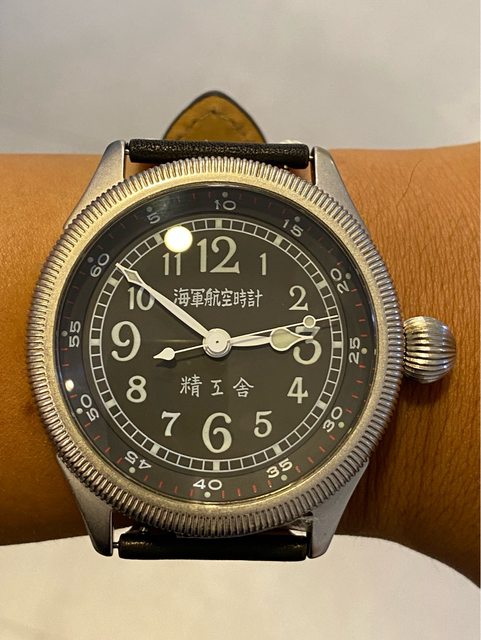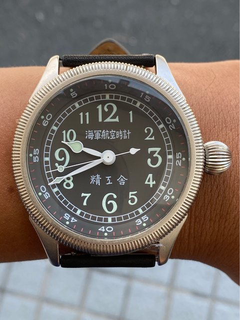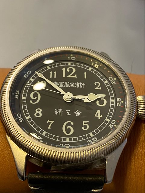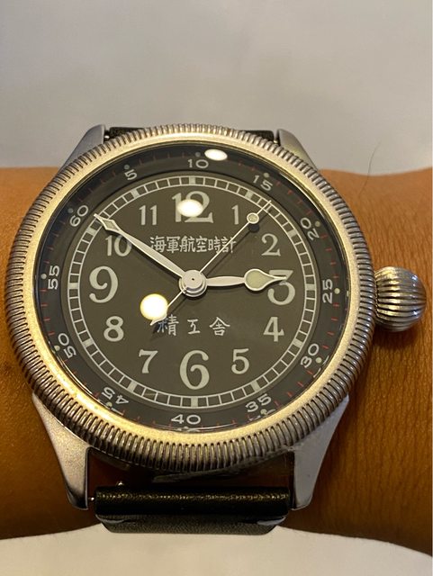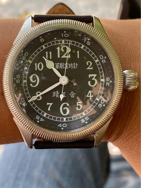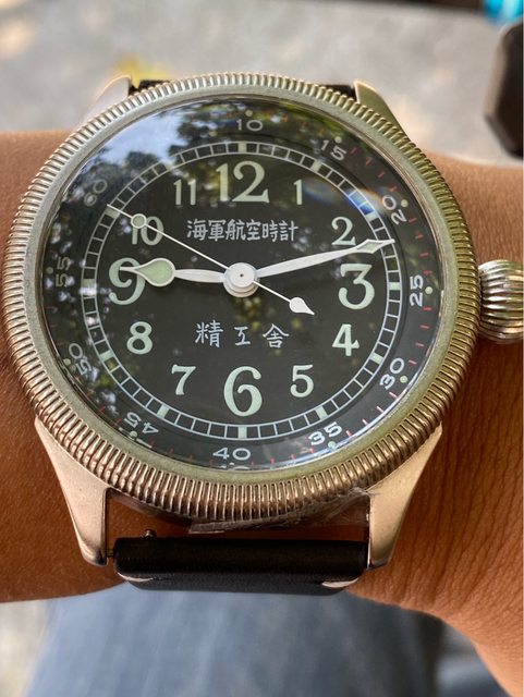 【商品名稱】海軍航空時計 (復刻版)精工舎 【商品價格】8660元(含店到店 【新舊程度】9成 【附件】單錶一顆 ————————————————— 當初買來收藏,日常習慣配戴合身的錶徑,以後大概也沒什麼機率用到故出售,原廠錶帶 已崩解,更換替代的錶帶,走時部分需要洗油。 由日本元海軍大尉柴田英夫監修與精工鐘錶博物館合作,紀念終戰60周年所製作 二戰中日本飛行員所使用的手錶,看膩了歐美飛行錶款的錶友可以試試看大日本帝国海軍 的飛行錶 錶徑:約48mm 機芯:SEIKO CALIBER Y675(7s25) 錶殼:鍍銅黃銅 錶冠:洋蔥圈(可旋轉) 厚度:約12mm —————————————————- 匯款後店到店,無面交服務,無交流