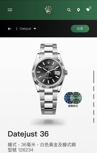 型號:DJ 36mm 126234 黑/灰 (三版帶配太陽圈)或 OP 36mm 綠面